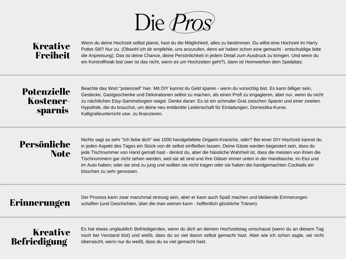 Abschließende Überlegungen zum Selbermachen deiner Hochzeit
